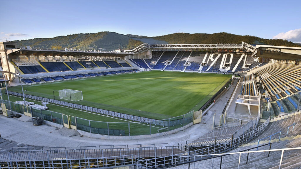 命名権の関係で、ゲヴィス・スタジアム(Gewiss Stadium)とも呼ばれています。